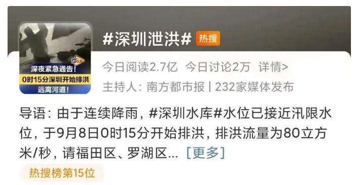 5日-9日,臺風(fēng)“???/span>先后兩次登陸福建、廣東。受其影響,南方多地出現(xiàn)特大暴雨,福建省、廣東省氣象臺多次發(fā)布“暴雨預(yù)警一級”。福州、廈門、漳州、深圳、廣州、佛山等城市內(nèi)澇嚴(yán)重,部分城市雨水齊腰,短時間強降雨超過100毫米,深圳降雨量更是打破1953年以來的降雨極值,地鐵灌水,深圳泄洪多次登上各大平臺的熱搜第一。
